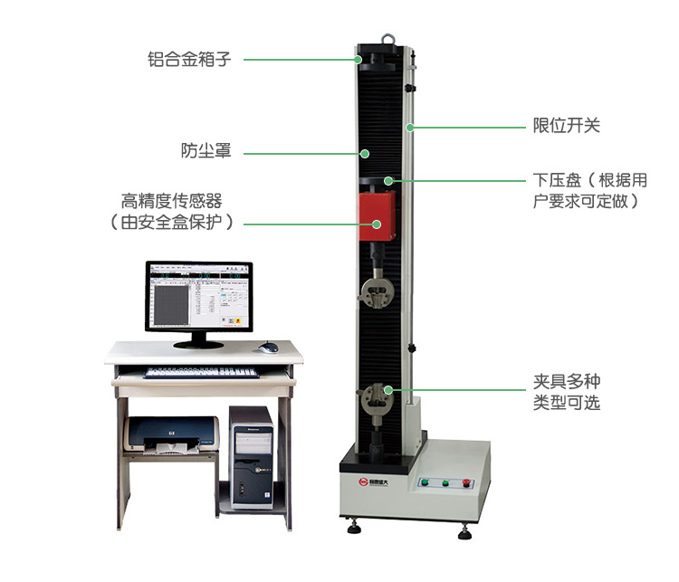 WDW系列微機控制電子萬能試驗機具有結(jié)構(gòu)緊湊、簡單易用等特點,主要適用于金屬絲、金屬箔、塑料、橡膠、食品包裝、紡織纖維、電線電纜、粘膠劑、土工、木材、紙張、接插件等行業(yè)的拉伸、剝離、撕裂等試驗。